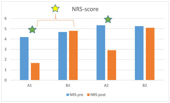 | B2 (10) | 5.3 ± 2.7 | 5.1 ± 2.7 | 0.1 |