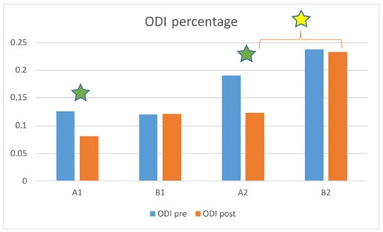| Subgroup (n) | Total ODI Score | Mean ± SD | p-Value (Wilcoxon Test) |