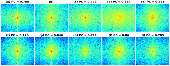 PC is a measure of linear correlation between two entities [54,55]. Here, correlation between the frequency domain amplitude for the full bandwidth image and band-limited image is computed as: