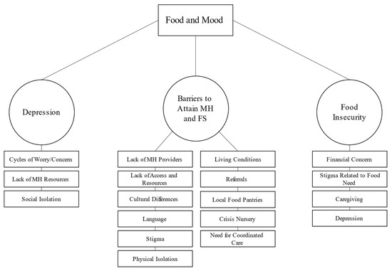 - Garg, A.; Toy, S.; Tripodis, Y.; Cook, J.; Cordella, N. Influence of maternal depression on household food insecurity for low-income families. Acad. Pediatr. 2015, 15, 305–310. [Google Scholar] [CrossRef]