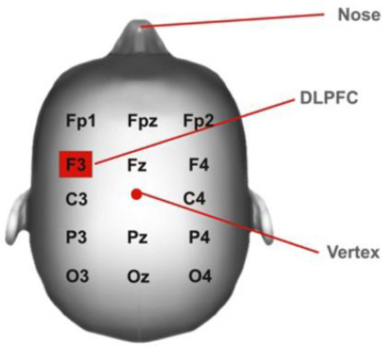 DLPFC (dorsolateral prefrontal cortex) position.
