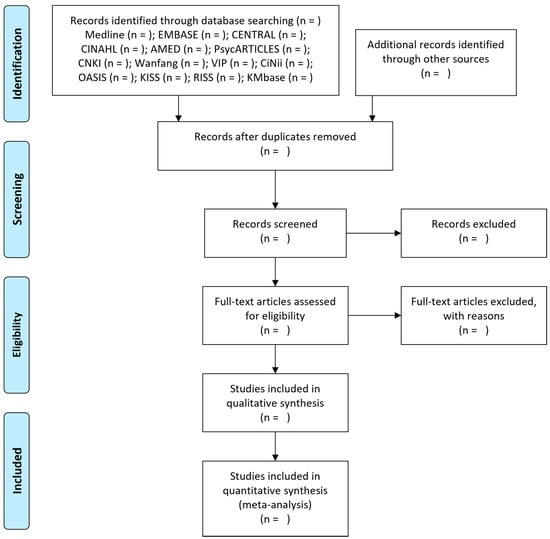 A PRISMA flow diagram showing the literature screening and selection processes. Abbreviations: AMED, Allied and Complementary Medicine Database; CENTRAL, Cochrane Central Register of Controlled Trials; CINAHL, Cumulative Index to Nursing and Allied Health Literature; CiNii, Citation Information by National Institute of Informatics; CNKI, China National Knowledge Infrastructure; EMBASE, Excerpta Medica Database; KCI, Korea Citation Index; KISS, Koreanstudies Information Service System; KMbase, Korean Medical database; OASIS, Oriental Medicine Advanced Searching Integrated System; PRISMA, Preferred Reporting Items for Systematic reviews and Meta-Analyses.