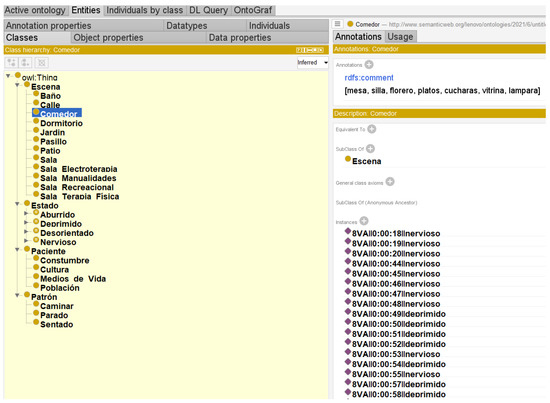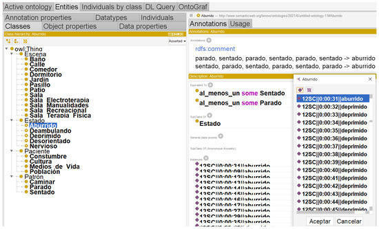 - The study develops an ontology-based model for detecting the mood of patients with Alzheimer’s disease, promoting standardized, consistent, comprehensive, and highly accurate means for mood representation of patients with the previously exposed disease [47].The development of ontology in the field of health sciences and specifically in psychiatry, provides artificial knowledge-based diagnosis to reduce the time and specify the diagnosis of the mood of patients with Alzheimer’s disease, where the stages of taxonomy and semantics are the pillars for the construction of patterns in the identification of movements and their subsequent analysis to evaluate and diagnose the mental state of the elderly.