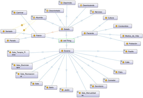 - Accordingly, Alzheimer’s patients represent the original class and subclasses (Disoriented, Anxious, Bored, Wandering, Sad) in this context. According to the study, the class patterns (Walking, Standing, and Sitting) are associated with the subclass State, which supports the ontological modelling.