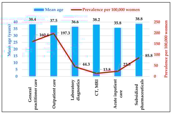 Average age and prevalence of women with endometriosis by different types of care. Source: NHIFA, 2019.