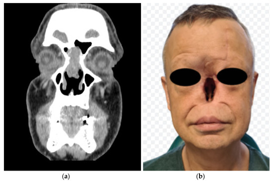 - Cenda, P.; Sokola, M.; Nazim-Zygadlo, E.; Modrzejewski, M.; Dobosz, P.; Kozok, A. Typical surgical reconstruction for nose and paranasal sinuses oncology. Otolaryngol. Pol. 2008, 62, 412–414. [Google Scholar] [CrossRef]