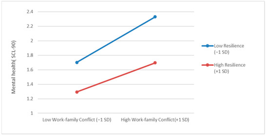 3.3. Relationship between Mental Health, Work–family Conflict, and Resilience