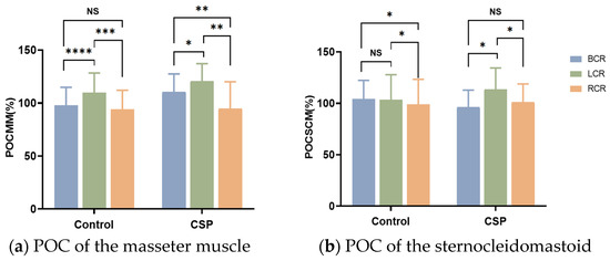 The percentage overlap coefficient (POC%) was calculated to compare the symmetry of the left and right side muscles of each group in the CSP group and the control group [27].