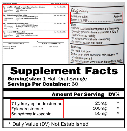 To improve the accuracy of the OCR-based doping drug-recognition system developed in this study, the system was built in a way that automatically saves the analyzed photos and results, so that the researcher can determine any error. Specifically, the system used a section of a label containing the active ingredient of a drug, such as drug facts or prescription drug name (Figure 3), as information about substances in drugs that athletes may want to check. In addition, images of a section of a label containing the active ingredient were entered, and Tesseract OCR was used to extract text from the designated section.