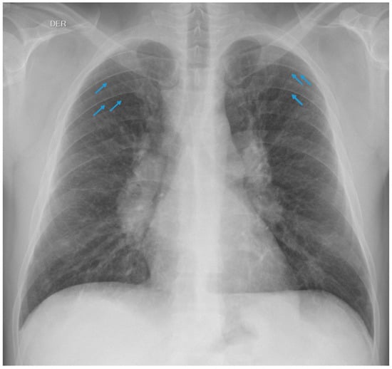 In some cases, siderosis can also be asymptomatic, and radiographs may show the presence of small dotted or line-shaped opacities in the lung fields [23].