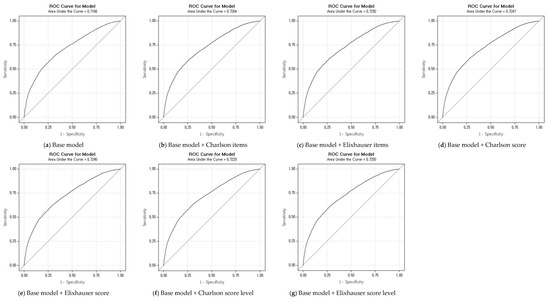 Data analysis was performed using SAS® 9.4 (Cary, NC, USA) software. Descriptive statistics, including mean, standard deviation (SD), frequency, and proportion, were used to summarize patient and hospital characteristics and NSO status. The admission case was considered the unit of elementary event. The differences in proportions and means by patient and hospital characteristics were tested using the chi-squared test and Student’s t-test. Univariate and multiple logistic regression were used to examine the relationship between CCI or ECI and NSOs, adjusted with patient and hospital characteristics. The base model included admission route (outpatient or emergency room as an urgency indicator), gastrectomy type (total or subtotal), lymph node dissection, hospital location, and hospital type. Item models are models in which CCI or ECI disease items are added to the base model as independent variables. Continuous models are models in which CCI or ECI scores are added as quantitative independent variables. Categorical models are models in which categorized CCI (Charlson’s score <3 or ≥3) or ECI (Elixhauser’s score < 0, 0, 1–4, ≥5) are added to the base model. Two-sided tests were used for all statistical tests, and statistical significance was deemed with p < 0.05. The Akaike information criterion (AIC) and C-statistic were the indicators used to assess the performance and discriminative ability of the methods over the base model, which includes sex, age, medical security type, admission route, gastrectomy type, lymph node dissection, hospital location, and hospital type. The AIC was calculated as 2k–2ln(L), where k is the number of parameters of the model, and L is the maximum likelihood. A smaller AIC value corresponds with the better data explanation ability of the model. The C-statistic shows the discrimination ability, with values of 0.5 (no ability), 0.7 to 0.8 (acceptable), 0.8 to 0.9 (excellent), 0.9 to 1.0 (outstanding), and 1 (perfect discrimination).