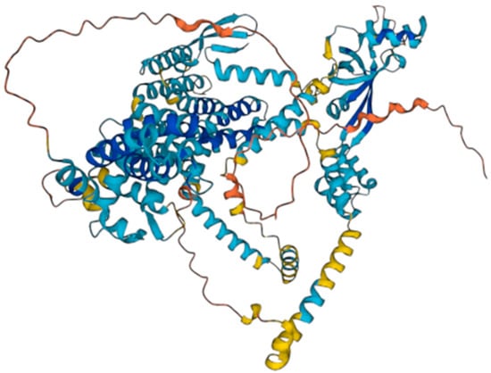 - Jumper, J.; Evans, R.; Pritzel, A.; Green, T.; Figurnov, M.; Ronneberger, O.; Tunyasuvunakool, K.; Bates, R.; Žídek, A.; Potapenko, A.; et al. Highly accurate protein structure prediction with AlphaFold. Nature 2021, 596, 583–589. [Google Scholar] [CrossRef]