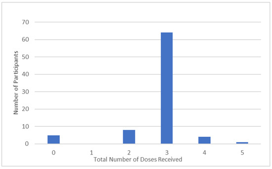Number of participants reporting having received each dose of the COVID-19 Vaccination (n = 82).