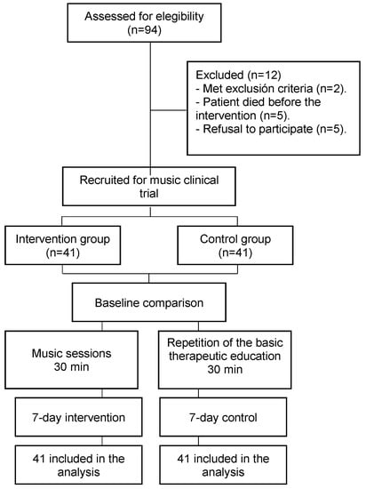 To address the previous hypotheses, we conducted a double-blind, multicentre, randomised controlled clinical trial of family caregivers for cancer patients in palliative home care [31]. The intervention group received a complementary music medicine intervention for seven consecutive days, while the control group received conventional treatment also for seven consecutive days. Both groups were assessed for quality of life and satisfaction with therapy at baseline and after the intervention period. The study is registered at Clinical Trials.gov, reference code: NCT04052074; registered on 9 August 2019.