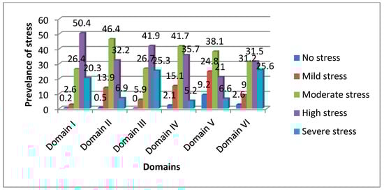 Prevalence and degrees of stress in each domain.