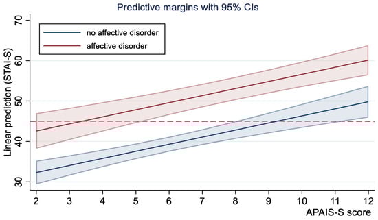 Figure 3 shows the effect of surgery related concerns (APAIS-S) on preoperative anxiety by distinguishing patients who have high (n = 21) and low (n = 82) affective disorders on the basis of both STAI-T and PHQ-9 evaluations (STAI-T ≥ 40 or PHQ-9 ≥ 10) as assessed during day-hospital counseling.