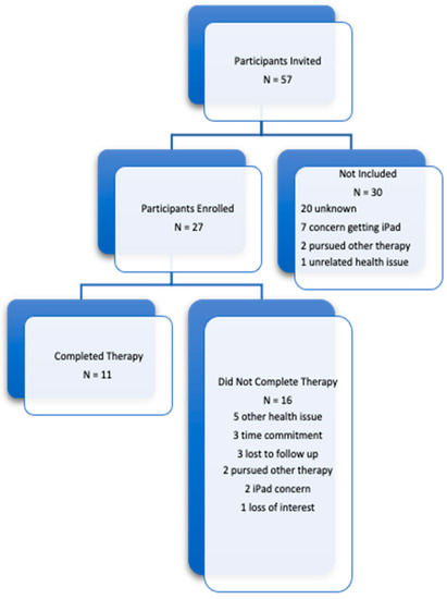 Recruitment and follow up took place during the early COVID-19 pandemic, which complicated communication due to participant and potential participant contact and therapy set up being conducted over an online setting. Recruitment was limited to the online and telemedicine setting leaving out participants who did not have access or use these avenues of communication with care providers. It required participants or their caregivers to have access to the internet and an internet connecting device and operated video calling applications. Furthermore, many participants missed follow up appointments and cognitive testing appointments due to COVID-related illness, and some reported worsened mental health status during the course of the pandemic. If participants did not regularly check their emails, follow up cognitive testing and check ins with study administers were at times delayed and some patients were lost to follow up.