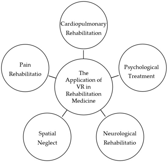 Rehabilitation medicine aims to improve the quality of life of sick, injured, and disabled people and their eventual integration into society. Because VR has the characteristics of virtual tasks, interesting scenarios, and high levels of user participation, VR technology can be a realistic and convenient tool for all rehabilitation subjects to adapt to the real world in advance, and it can achieve excellent therapeutic effects in rehabilitation. In recent years, VR technology, as a frontier technology in rehabilitation medicine, has shown great advantages and is increasingly used in multiple fields, such as neurological rehabilitation, pediatric rehabilitation, orthopedic rehabilitation, etc. For example, the use of a commercial wearable head-mounted display (HMD) and selected VR motion games for Parkinson’s disease to maintain physical and functional abilities has shown good disease-management effects [2]; a VR-based interactive cognitive training (VICT) system shows good effects on the cognitive rehabilitation of traumatic brain injury (TBI) in children [3]; and VR technology can also be combined with existing rehabilitation methods, such as walking exercises combined with virtual reality, which can improve gait and balance problems significantly [4].