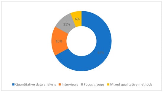 Most of the studies (n = 43) used a quantitative analysis approach to survey primary data collection or secondary analysis of previously collected data from large-scale surveys, such as regional or national studies (Figure 2). Most studies used cross-sectional data (n = 59), and only five used longitudinal data, with intervals spanning from 1 to 14 school years. In turn, qualitative studies (n = 21) included interviews, focus groups (in person or by phone), ethnographic research, classroom recordings, document collection, observations, and data analysis, such as narrative, thematic, or interpretative phenomenological analysis.