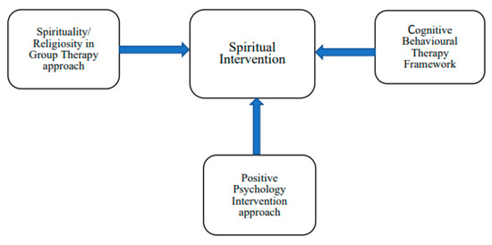The intervention was based on a modified theoretical framework that combined spirituality/religiosity in a group therapy approach, a cognitive behavioral therapy framework, and a positive psychology intervention (Figure 1).
