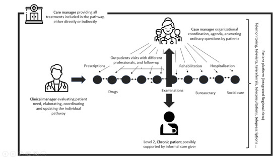 This approach is also consistent with the primary and intermediate care facilities introduced by the Ministry of Health, as care managers are easy to overlap with Case di Comunità (and previous Case della Salute, for example, in the Region of Tuscany) [8,43], clinical managers can work in Case di Comunità and case managers can work in Case di Comunità and Centrali Operative Territoriali.