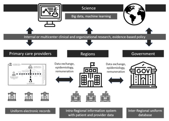 5-Levels model, integrated information systems, patient-database driven population health management adopted by the region of Lombardy, elaborated by the authors from [40] (p. 12).