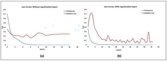 As discussed in Section 3, the customized CNNs were trained using the mosaic CVR dataset for up to 200 epochs, with a learning rate of 0.001, the Adam optimizer, and an early stopping callback. While investigating the effects of batch size, it was observed that increasing the batch size improved the model performance and reduced the noise in the validation loss. Based on the results and recommendations from Bengio [59], a batch size of 32 was used.