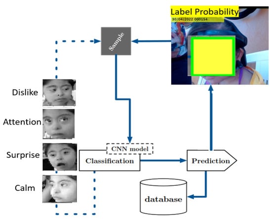Figure 2 shows the general scheme of our proposal. Thus, this work is based on labeling the emotion a child with Down Syndrome has during dolphin-assisted therapy with high probability. In this figure, it can be observed that emotions are classified by a convolutional neural network model which predicts the possible emotion of the child during the DAT.