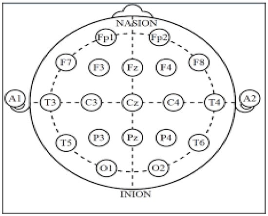 Generally, for the acquisition and recording of the brain’s electrical activity in BCI systems, surface electrodes are used on the scalp. There are several ways to accommodate them, called acquisition systems, or simply arrays, e.g., Illionis, Montreal Aird, Lennox, etc., but the most used for research purposes, and certainly in this study, is the International 10-20 Positioning System [].