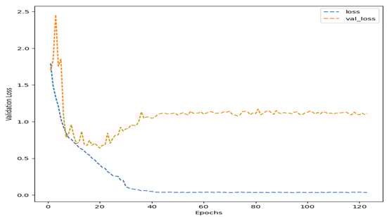 The decision to stop early and determine the appropriate number of epochs in Figure 8 is based on monitoring the model’s performance by using the validation data. Overfitting occurs when a model learns to perform exceptionally well on the training data; however, it fails to generalize unseen data, such as the validation set. To address this concern, we continuously tracked the model’s performance on the validation data during training. If we noticed that the validation performance started to degrade or stagnate while the training performance continued to improve, it indicated a sign of overfitting. In Figure 8, the decision to stop at epoch 30 is a result of this monitoring process. We observed that the validation performance reached a plateau after epoch 30, suggesting that the model’s ability to generalize was stabilized. Thus, stopping at this point helps prevent overfitting and ensures that the model achieves the best possible performance on unseen data.