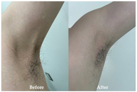 Left axilla at the first visit (Before) and left axillary region three months after onset (After). The cord-like structures in the left axilla have disappeared.
