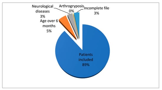 Following the exclusion of patients with neurological diseases, with neurological damage of central origin, and those whose age at the first orthopedic examination exceeded 6 months, 560 patients were included in the study (Table 1).
