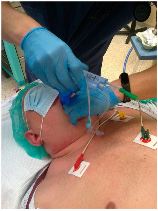 - Beleña, J.M.; Gasco, C.; Polo, C.E.; Vidal, A.; Núñez, M.; Lopez-Timoneda, F. Laryngeal mask, laryngeal tube, and Frova introducer in simulated difficult airway. J. Emerg. Med. 2015, 48, 254–259. [Google Scholar] [CrossRef]