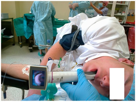 - Gaszyński, T. A combination of KingVision video-laryngoscope and flexible fibroscope for awake intubation in patient with laryngeal tumor--case report and literature review. Anaesthesiol. Intensive Ther. 2015, 47, 433–435. [Google Scholar] [CrossRef] [PubMed]