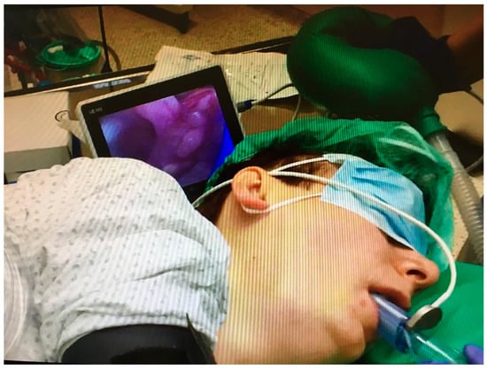 - Sgalambro, F.; Sanfilippo, F.; Santonocito, C.; Caltavuturo, C.; Grillo, C. Virtual laryngoscopy and combined laryngoscopic-bronchoscopic approach for safe management of obstructive upper airways lesions. Br. J. Anaesth. 2014, 113, 304–306. [Google Scholar] [CrossRef]