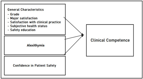 The goal of nursing education is to prepare nurses to deal with various clinical situations by increasing nursing expertise and clinical competence [1]. The clinical competence of nursing students is an important factor in determining their ability to independently perform nursing tasks professionally after graduation [2]. Nursing competence refers to the abilities required to accomplish the role of nurses [3]. Because the clinical competence of nursing students is built by handling various clinical cases, clinical practice potentially plays an important role in improving clinical performance [4]. It is critical to improve the clinical competence of nursing students because higher clinical competence equals higher professionalism in nursing and adaptability in the clinical field [5]. In particular, during the challenging situation of the COVID-19 pandemic, improvement in clinical competence of nurses and nursing students is more important than ever [5]. Nursing students will have a chance to learn communication skills and methods to communicate with medical staff and subjects in various nursing situations in clinical practice [6]. Nursing students can empathize with patients via efficient communication and relationship formation in clinical practice [7]. However, alexithymia hinders the development of empathy. Clear communication without expressing emotions is critical in complex and busy clinical fields [8] as expressing emotions disrupts clear communication, resulting in patient safety accidents such as crisis discovery, medication errors, delayed diagnosis, and death [9]. Since nursing students must play the role of medical personnel as prospective nurses, it is essential for them to have the expertise and skills to improve the awareness of patient safety and provide safe nursing [10]. Clinical competence, a cornerstone of effective nursing practice, encompasses not only the application of medical knowledge but also the ability to communicate effectively, exhibit emotional intelligence, and ensure patient safety. In recent years, researchers and educators have shown an increased interest in understanding the factors that influence the clinical competence of nursing students.