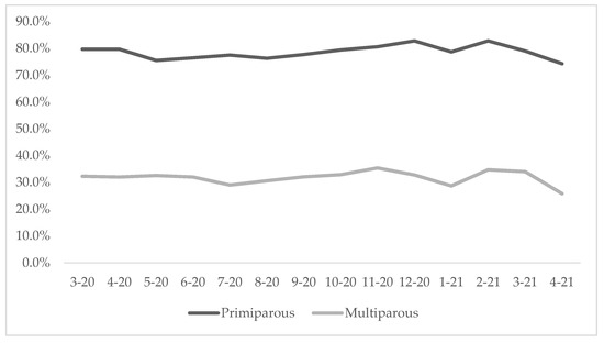 Prevalence of episiotomy among primiparous and multiparous women in four hospitals from March 2020 to April 2021 (N = 31,541).