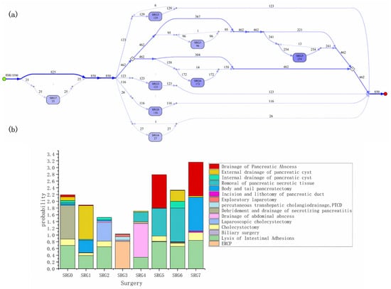 (a) The surgery process models of the severe acute pancreatitis; (b) the combinations of surgeries with different frequencies in each type of node.