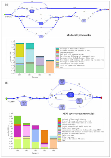 (a) The surgery process models of mild acute pancreatitis; (b) the surgery process models of MOF severe acute pancreatitis.