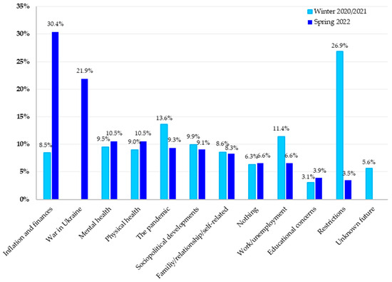 The category related to concerns about “mental health” was reported by a similar proportion of the respondents in winter 2020/2021 as in spring 2022.