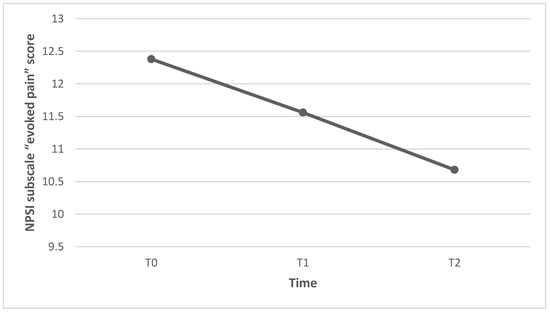 Reduction in NPSI subscale “evoked pain” scores from T0 to T2.