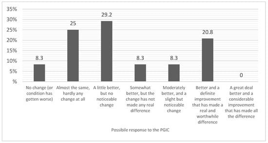 Figure 7 shows the PGIC after 6 weeks of NACVAN® intake. Overall, 33.3% of patients did not recognize any change after the NACVAN® intake, while 66.7% of them declared to feel somewhat better after the NACVAN® supplementation.