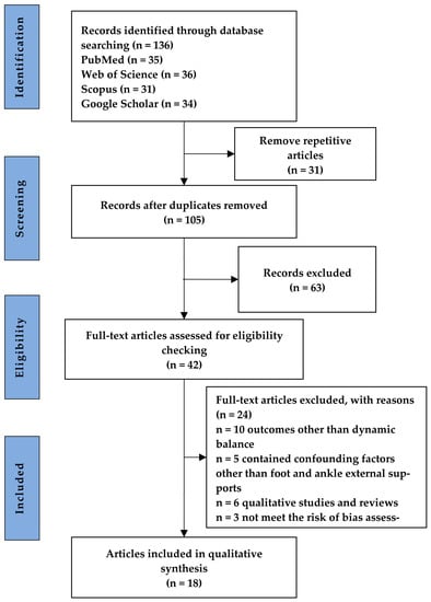 APA StyleTang, Y., Liang, P., Pan, J., Zhang, C., Ren, H., Cheng, S., & Kong, P. W. (2023). Effects of Ankle Orthoses, Taping, and Insoles on Postural Stability of Individuals with Chronic Ankle Instability: A Systematic Review. Healthcare, 11(18), 2570. https://doi.org/10.3390/healthcare11182570