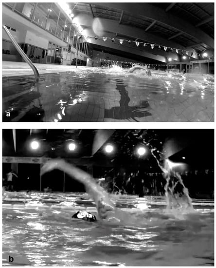 - Pink, M.; Edelman, G.; Mark, R.; Rodeo, S. Applied Biomechanics of Swimming. In Athletic and Sport Issues in Musculoskeletal Rehabilitation; Elsevier Saunders: St. Louis, MI, USA, 2011; Chapter 14; pp. 331–349. [Google Scholar]