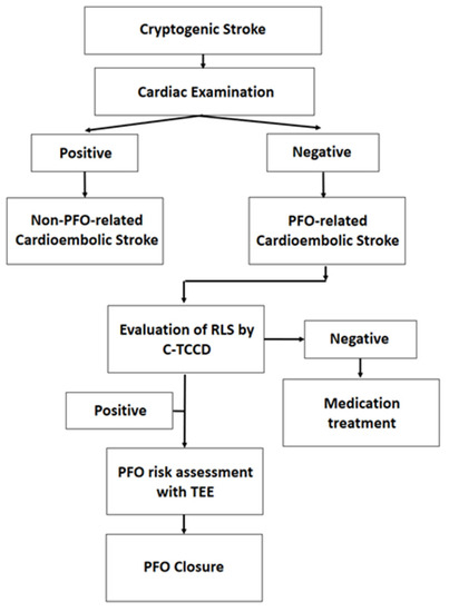 - Homma, S.; Sacco, R.L. Patent Foramen Ovale and Stroke. Circ. J. 2016, 80, 1665–1673. [Google Scholar] [CrossRef]