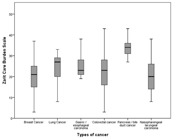 Mean Zarit Burden Scale Scores According to Cancer Types.