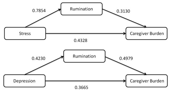 Results of Mediation Analysis (Hayes Model 4): Effects of Stress and Depression on Caregiver Burden via Rumination.