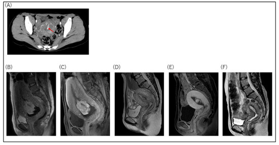 Representative images of RPOC cases with conservative management. (A) Case 23: Contrast-enhanced CT showed strongly contrast-enhanced RPOC in the arterial phase (postpartum day 10). Arrow shows RPOC. (B–F) Case 37: Serial changes in contrast-enhanced MRI during conservative management. (B) Sagittal T2WI showed an RPOC in the uterus. The RPOC size was 72 × 42 × 49 mm (postpartum day 3). (C) Sagittal contrast T1WI demonstrated strongly contrasted RPOC (postpartum day 3). (D) Sagittal T2WI showed RPOC in the uterus, whose size became smaller. The RPOC size was 22 × 17 × 15 mm (postpartum day 22). (E) Sagittal contrast T1WI still demonstrated strongly contrasted RPOC (postpartum day 22). (F) MRI did not detect RPOC (postpartum day 64). Ultrasound showed RPOC of 8 mm on postpartum day 87. On postpartum day 102, hysteroscopy showed that the RPOC was 10 mm, and on postpartum day 201, it was finally confirmed that the RPOC had disappeared. CT: computed tomography; RPOC: retained products of conception; MRI: magnetic resonance imaging; T2WI: T2-weighted imaging; T1WI: T1-weighted imaging.