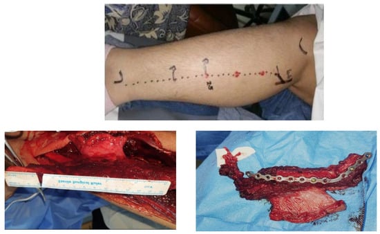 - Shah, S.A.; Irfanullah Bilal, M.; Shinwari, M.H.; Ahmad, A.; Ullah, E. Mandibular reconstruction with Free Fibula Flap: Experience at Hayatabad Medical Complex, Peshawar. J. Islamabad Med. Dent. Coll. 2019, 8, 198–202. [Google Scholar] [CrossRef]