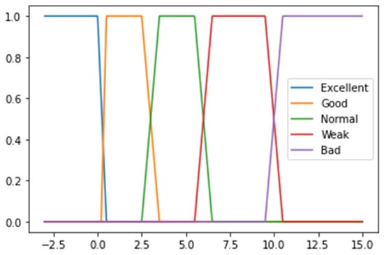 Fuzzy logic is a class of logic operations where the truth values of variables may be any real number between 0 and 1 [22]. Triangle or trapezium membership functions are convenient for the consensus and group-based decisions regarding fuzzy set definition [21]. In this paper, multi-level trapezium membership functions are defined for both inputs and outputs. The trapezium membership function is used to compute fuzzy membership values of the sensor data (1) and consists of five linear functions: